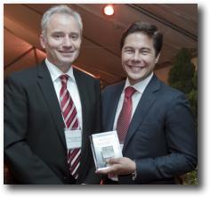 Two prominent community leaders were recognized at The Henry Samueli School of Engineering’s annual dinner and awards banquet on Sept. 21, 2010. Scott Garrett, retired chairman, president and chief executive officer of Beckman Coulter, Inc., and Robert E. Grant, chief executive officer and president of Bausch & Lomb Surgical, were both presented with the “Engineering the Future” award.