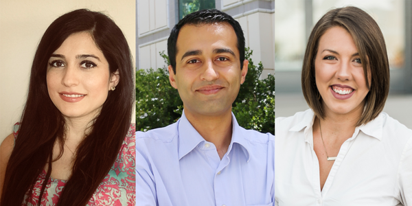 Medea Neek, Seyed “Amir” Saeidi and Rachel SmithJuly 16, 2018 - Three engineering doctoral students -- Medea Neek, Seyed “Amir” Saeidi and Rachel Smith -- were awarded a Graduate Dean’s Dissertation Fellowship for 2018-19.  The UC Irvine Graduate Division offers this award for students in their final year of graduate education, allowing them to forgo non-research related employment and concentrate on completing their dissertation. The fellowship consists of three quarterly awards of $6,000 (fall, winter, spring) or $5,000 for summer, plus in-state tuition and fees.