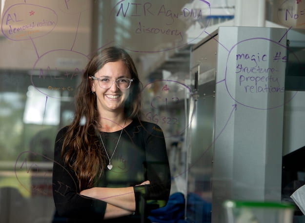 “There is untapped potential to extend fluorescence by DNA-stabilized silver nanoclusters into the near-infrared region,” she says. “The reason that’s so interesting is because our biological tissues and fluids are much more transparent to near-infrared light than to visible light.”