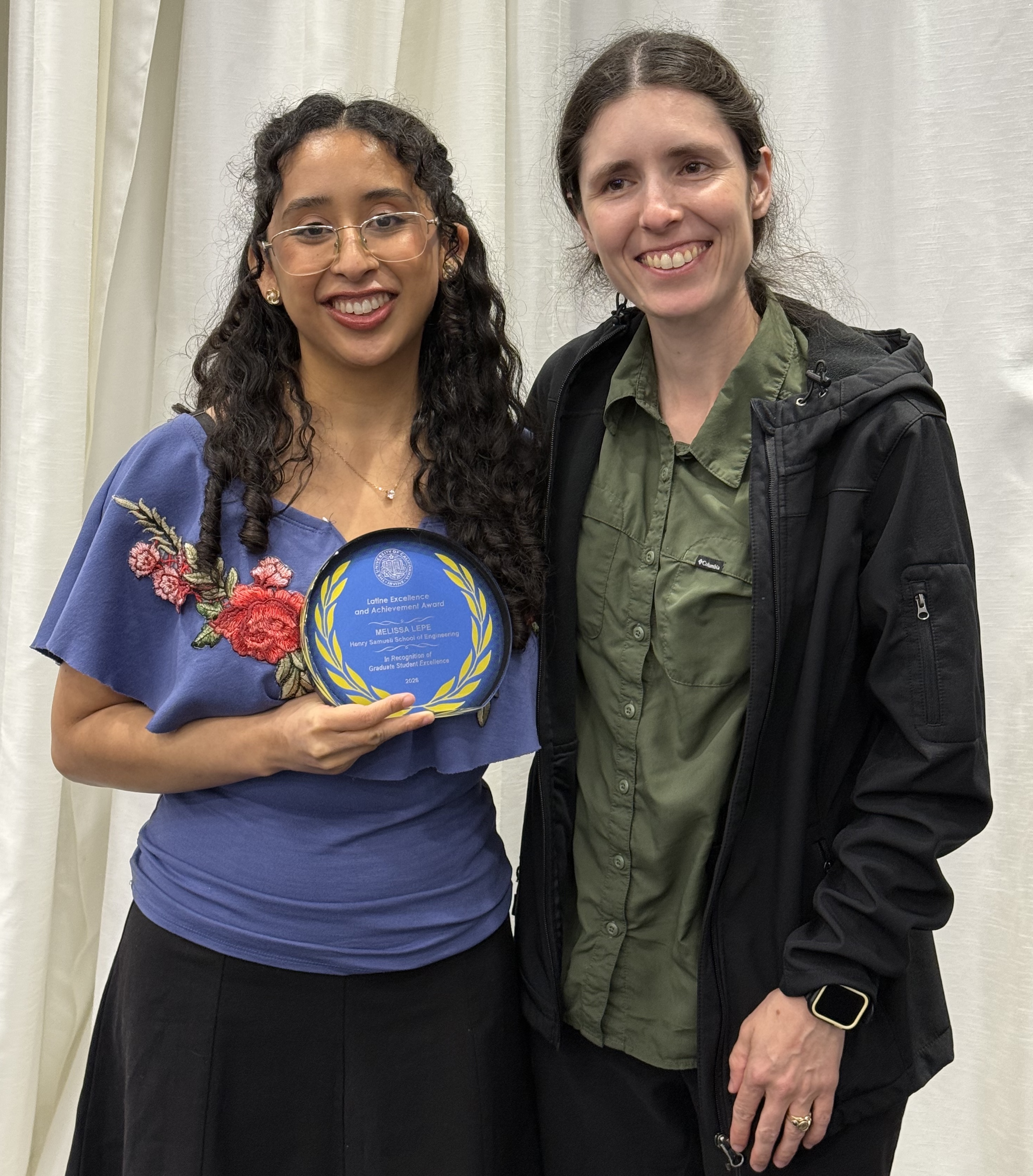 April 28, 2026 - Mechanical and aerospace engineering doctoral candidate Melissa Lepe received a Graduate Student Excellence Award at UC Irvine’s 9th annual Latine Excellence and Achievement Dinner (LEAD) on April 16, 2026, at the Pacific Ballroom in the UCI Student Center.